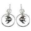 These hammered silver dangle hoop fish earrings combine fun and fashion. Fantastic earrings for the beach or fish lover. Trendy beach jewelry is always in style, even after the summer months end.