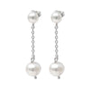 These dainty sterling silver freshwater pearl chain earrings are the perfect way to add a touch of elegance to any outfit. The two cultured freshwater pearls are connected with a sterling silver cable chain, creating a beautiful drop look. The pearls are 6mm in diameter and have a natural, iridescent luster. The earrings are finished with sterling silver push-backs for a comfortable fit.